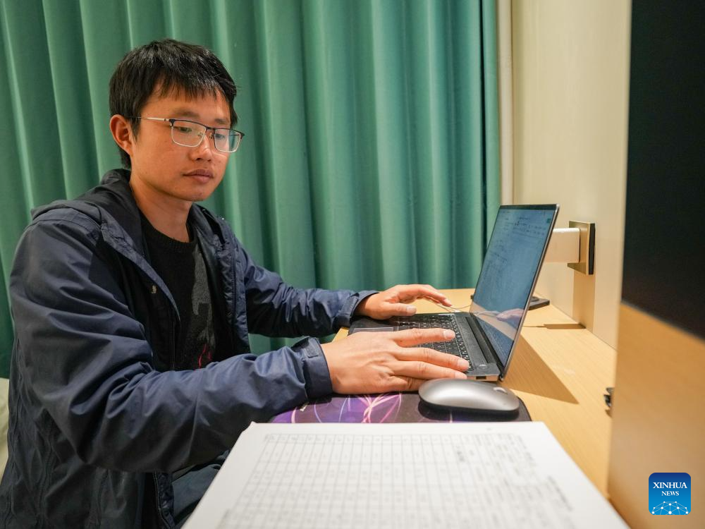 Yu Yi arranges data after a field research in Songpan County of Aba Tibetan and Qiang Autonomous Prefecture, southwest China's Sichuan Province, May 20, 2025. (Xinhua/Wang Xi)