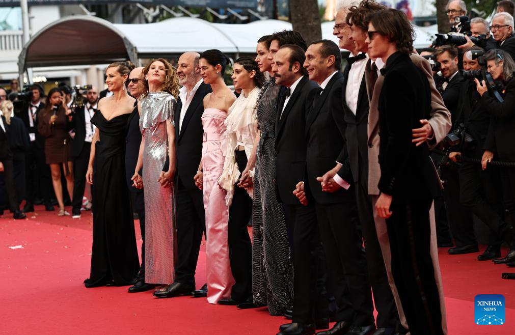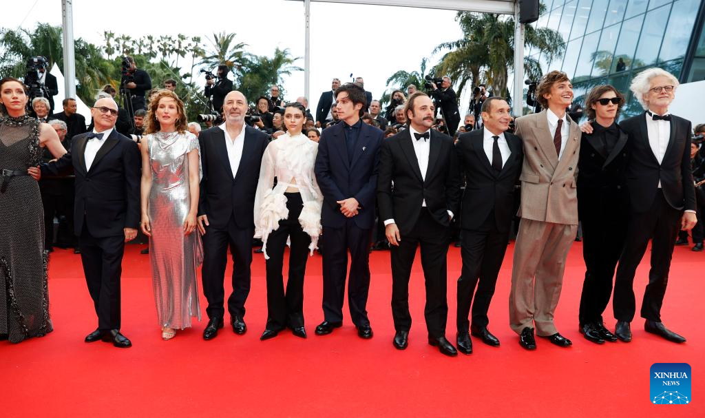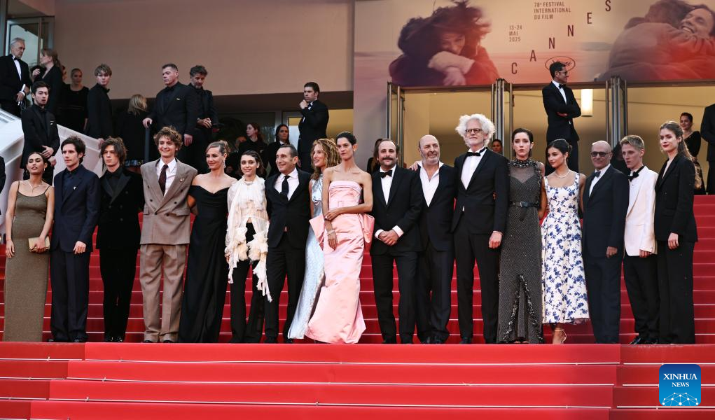 Cast members arrive for the screening of the film "La Venue de l'avenir" (Colors of Time) at the 78th edition of the Cannes Film Festival in Cannes, southern France, May 22, 2025. (Xinhua/Gao Jing)
