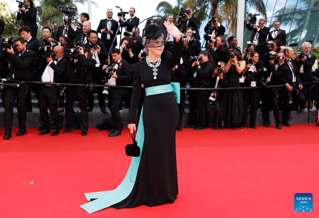 British actress Helen Mirren arrives for the screening of the film "La Venue de l'avenir" (Colors of Time) at the 78th edition of the Cannes Film Festival in Cannes, southern France, May 22, 2025. (Xinhua/Gao Jing)