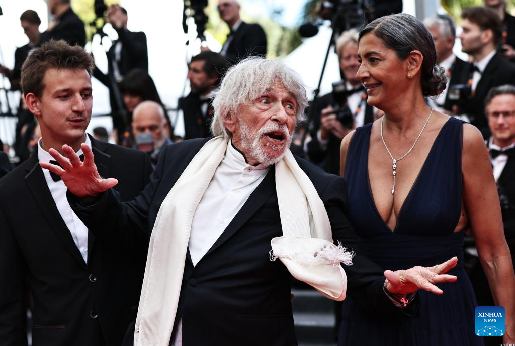 French actor Pierre Richard (C) arrives for the screening of the film "La Venue de l'avenir" (Colors of Time) at the 78th edition of the Cannes Film Festival in Cannes, southern France, May 22, 2025. (Xinhua/Gao Jing)