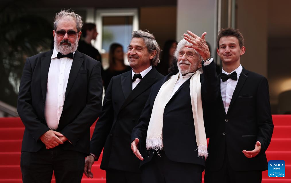 French actor Pierre Richard (2nd R) arrives for the screening of the film "La Venue de l'avenir" (Colors of Time) at the 78th edition of the Cannes Film Festival in Cannes, southern France, May 22, 2025. (Xinhua/Gao Jing)