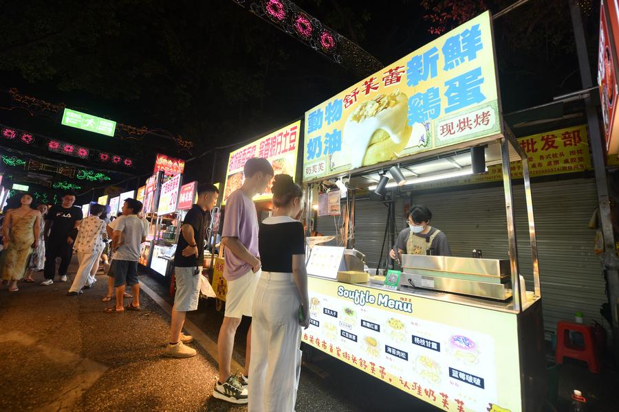 Customers wait for Lu Yiding to make cakes at the Xiguan night market in Nanning, south China's Guangxi Zhuang Autonomous Region, on May 20, 2025. (Xinhua/Huang Xiaobang)Lu Yiding serves cakes to customers at the Xiguan night market in Nanning, south China's Guangxi Zhuang Autonomous Region, on April 7, 2025. (Xinhua/Huang Xiaobang)Lu Yiding (R) and Wang Fufu make cakes at the Xiguan night market in Nanning, south China's Guangxi Zhuang Autonomous Region, on May 20, 2025. (Xinhua/Huang Xiaobang)Lu Yiding (R) and Wang Fufu pack up their utensils in the early morning at the Xiguan night market in Nanning, south China's Guangxi Zhuang Autonomous Region, on April 7, 2025. (Xinhua/Huang Xiaobang)Lu Yiding packs up his cake stall in the early morning at the Xiguan night market in Nanning, south China's Guangxi Zhuang Autonomous Region, on April 7, 2025. (Xinhua/Huang Xiaobang)An aerial drone photo taken on May 22, 2025 shows the Xiguan night market in Nanning, south China's Guangxi Zhuang Autonomous Region. (Xinhua/Huang Xiaobang)■