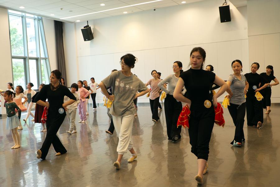 Enthusiasts experience a professional class of a dance school during a public event for International Dance Day 2025 at the Shanghai International Dance Center in east China's Shanghai, April 26, 2025. (Photo by Chen Yuzhou/Xinhua)
