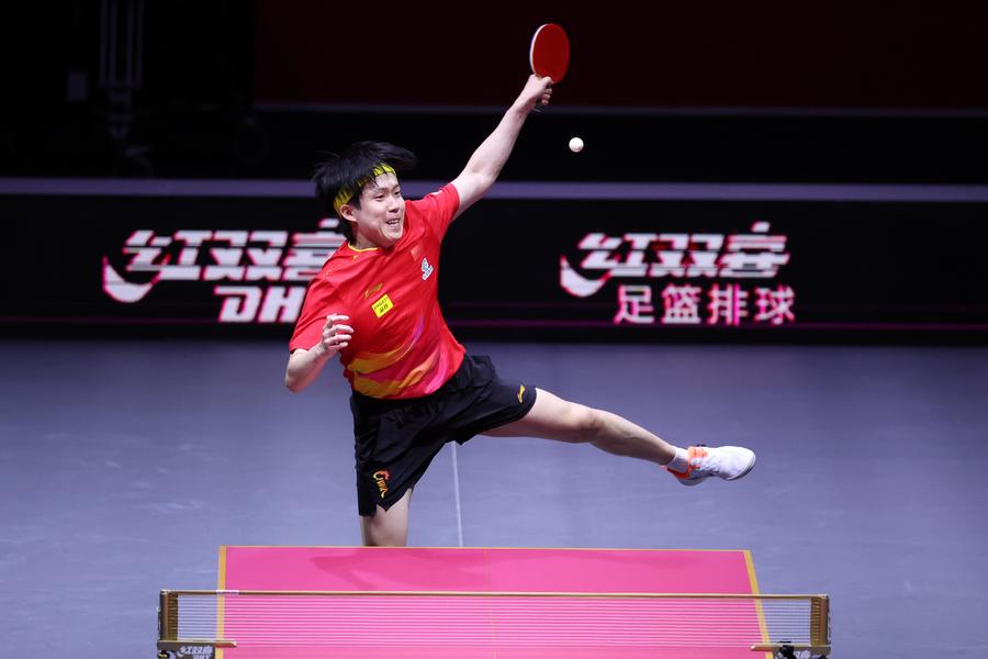 DOHA, May 24 (Xinhua) -- Wang Chuqin took sweet revenge for his Olympic loss to Truls Moregard, beating the Swede 4-1 in the men's singles semifinals of the World Table Tennis Championships on Saturday.