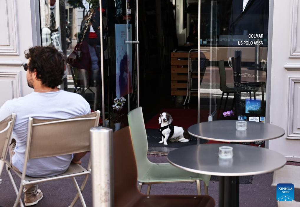 A staff member waits outside after a power outage in Cannes, southern France, on May 24, 2025. The Prefecture of the southern French Department of Alpes-Maritimes on Saturday confirmed that a power outage is affecting the western part of the department, including Cannes and its surroundings. The 78th Cannes Film Festival organizers said that, thanks to an independent power supply, all scheduled events and screenings, including the Closing Ceremony, will proceed as planned and under normal conditions. (Xinhua/Gao Jing)