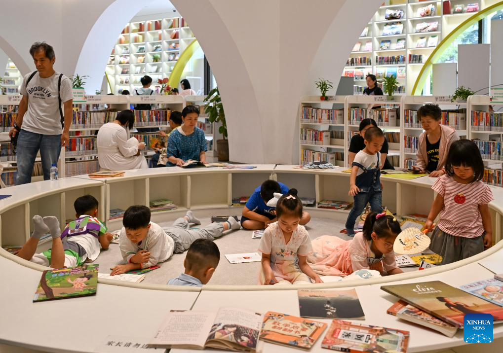 Children read books at the Zikawei Library in east China's Shanghai, May 17, 2025. In recent years, Shanghai has been promoting the construction of key public cultural facilities and cultural landmarks with Shanghai characteristics.