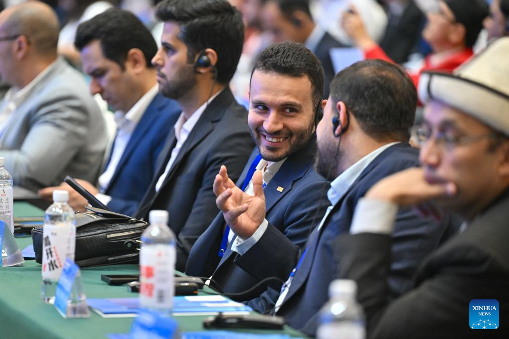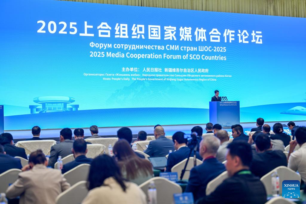 Guests attend the 2025 Media Cooperation Forum of SCO Countries held in Urumqi, northwest China's Xinjiang Uygur Autonomous Region, May 23, 2025. With the theme of "Building a Better Home Together for a Prosperous Future," the forum kicked off in Urumqi of Xinjiang on Friday. Over 300 representatives from mainstream media outlets, government departments, academic institutions, and enterprises from 26 SCO member states, observer states, and dialogue partners attended the forum. (Xinhua/Ding Lei)