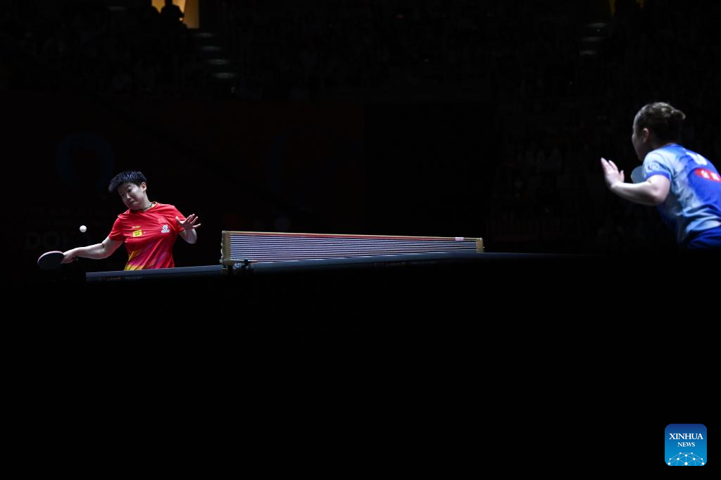 DOHA, May 24 (Xinhua) -- Sun Yingsha disposed of Japan's Mima Ito in straight sets in the women's singles semifinals on Saturday to confirm a clean sweep of the event's medals for China at the World Table Tennis Championships.