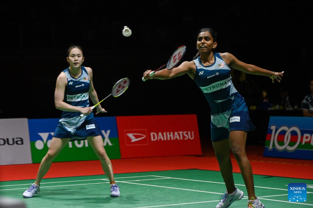 Pearly Tan/Thinaah Muralitharan (R) compete the women's doubles semifinal between Jia Yifan/Zhang Shuxian of China and Pearly Tan/Thinaah Muralitharan of Malaysia at 2025 Malaysia Masters badminton tournament in Kuala Lumpur, Malaysia, May 24, 2025. (Photo by Chong Voon Chung/Xinhua)