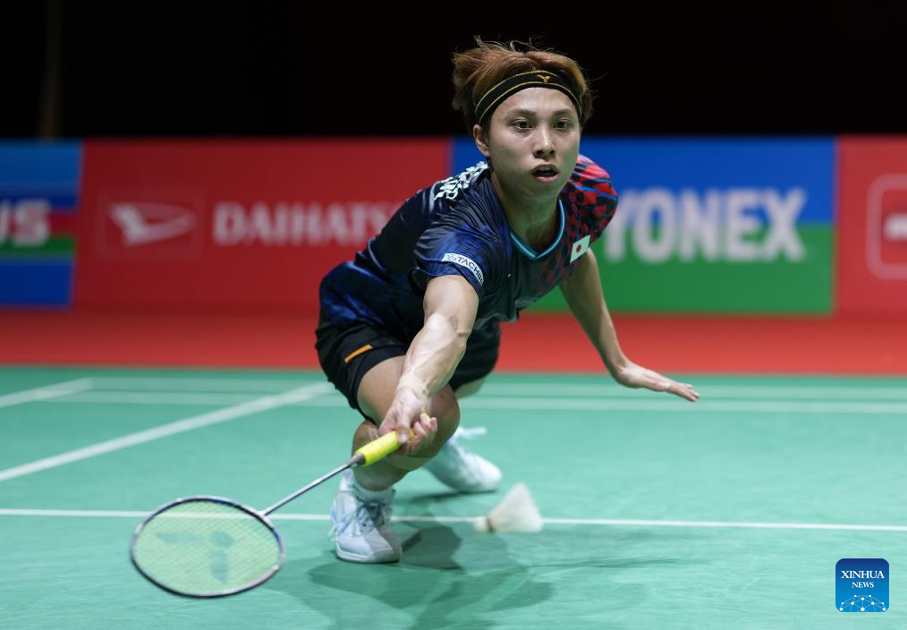 Ratchanok Intanon of Thailand hits a return during the women's singles semifinal match between Wang Zhiyi of China and Ratchanok Intanon of Thailand at Malaysia Masters 2025 in Kuala Lumpur, Malaysia, May 24, 2025. (Xinhua/Jia Haocheng)