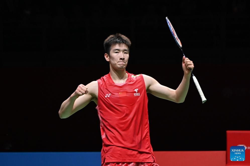 Li Shifeng of China celebrates after the men's singles final match between Li Shifeng of China and Srikanth Kidambi of India at the Malaysia Masters 2025 badminton tournament in Kuala Lumpur, Malaysia, May 25, 2025. (Photo by Chong Voon Chung/Xinhua)