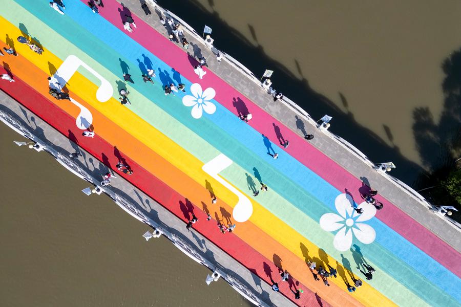 A drone photo taken on May 24, 2025 shows people visiting a "rainbow bridge" at the Sun Island Scenic Spot in Harbin, northeast China's Heilongjiang Province. (Xinhua/Zhang Tao)People ride camels at the Mingsha Mountain and Crescent Spring scenic spot in Dunhuang, northwest China's Gansu Province, May 24, 2025. (Photo by Zhang Xiaoliang/Xinhua)An aerial drone photo taken on May 24, 2025 shows the Changzhou-Taizhou Yangtze River Bridge under construction in east China's Jiangsu Province. (Photo by Tang Dehong/Xinhua)Players of Wuhan Jiangda Women's FC celebrate winning the final between Wuhan Jiangda Women's FC of China and Melbourne City FC of Australia at the 2024/2025 AFC Women's Champions League in Wuhan, China, May 24, 2025. (Xinhua/Wu Zhizun)A staff member waits outside after a power outage in Cannes, southern France, on May 24, 2025. The Prefecture of the southern French Department of Alpes-Maritimes on Saturday confirmed that a power outage is affecting the western part of the department, including Cannes and its surroundings. The 78th Cannes Film Festival organizers said that, thanks to an independent power supply, all scheduled events and screenings, including the Closing Ceremony, will proceed as planned and under normal conditions. (Xinhua/Gao Jing)Flamingos are seen at the Sel Kapani Dam Lake in Ankara, Türkiye, May 23, 2025. (Mustafa Kaya/Handout via Xinhua)The released Ukrainians return to Ukraine by bus, May 23, 2025. Ukrainian President Volodymyr Zelensky on Friday announced that 390 Ukrainians returned home from captivity during the first stage of prisoner exchange with Russia under the "1,000 for 1,000 formula". Ukraine and Russia reached a deal on the largest swap of their captives during a meeting in Türkiye's Istanbul on May 16. (Photo by Peter Druk/Xinhua)A contestant competes during the 2025 International Cooking and Pastry Competition in Seoul, South Korea, May 24, 2025. (Photo by Jun Hyosang/Xinhua)Wang Chuqin hits a return during the men's singles quarterfinal between Wang Chuqin of China and Lin Yun-Ju of Chinese Taipei at ITTF World Table Tennis Championships Finals Doha 2025 in Doha, Qatar, May 23, 2025. (Xinhua/Xiao Yijiu)■