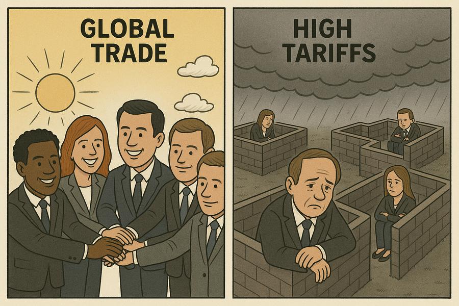 Global trade thrives from cooperation, withers in isolation.
