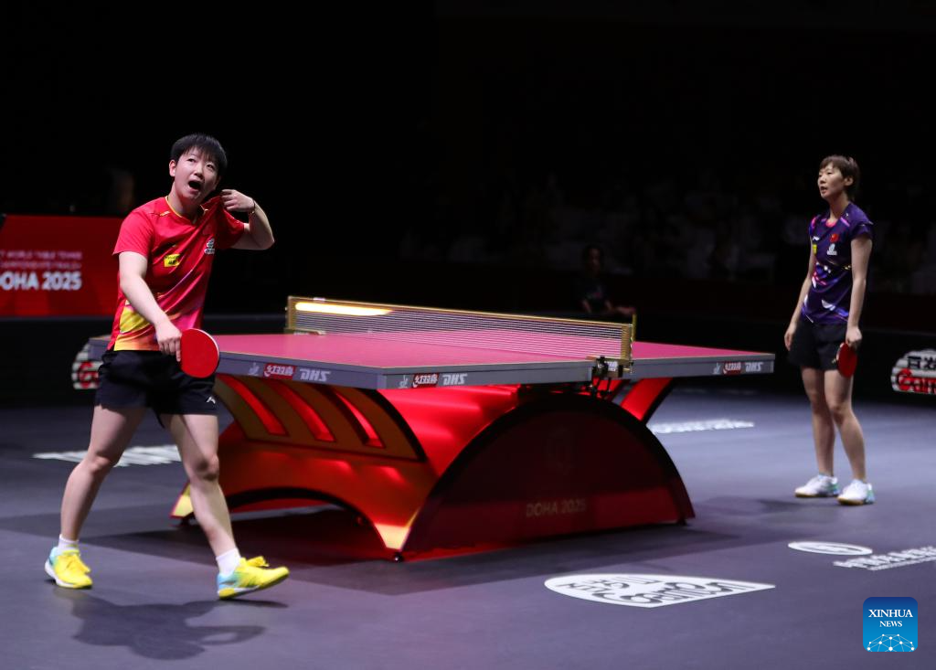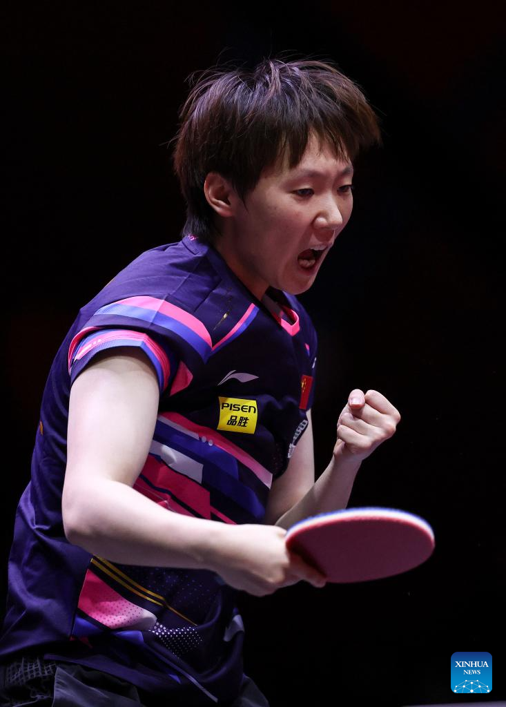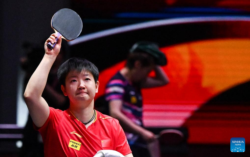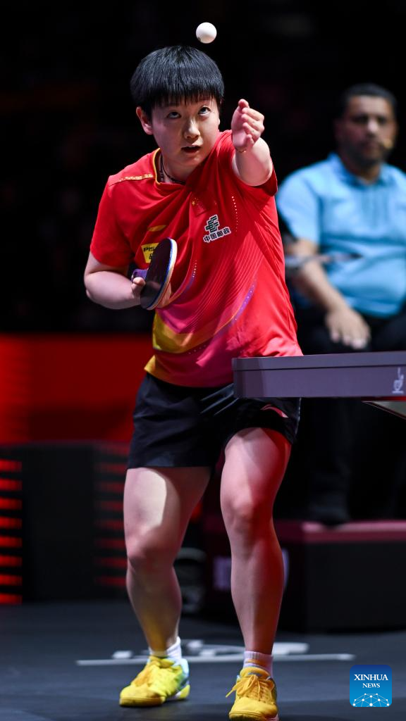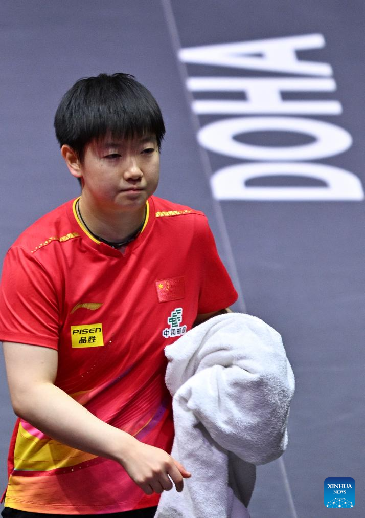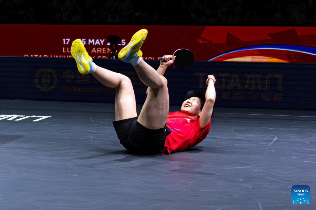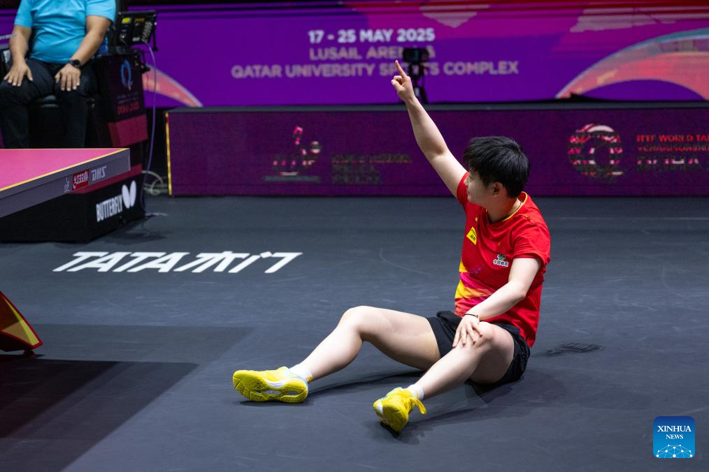 DOHA, May 25 (Xinhua) -- Defending champion and world No. 1 Sun Yingsha defeated second-ranked Wang Manyu 4-3 to retain her women's singles title at the World Table Tennis Championships on Sunday, adding to the mixed doubles crown she had claimed earlier in the tournament.