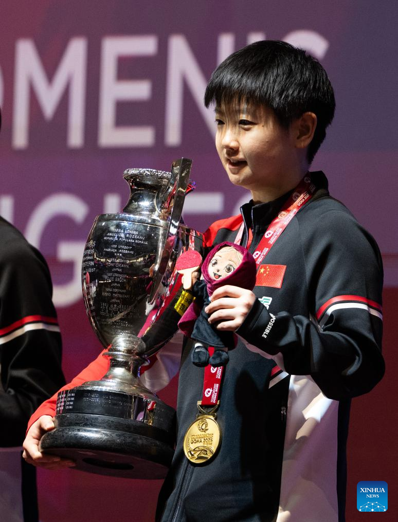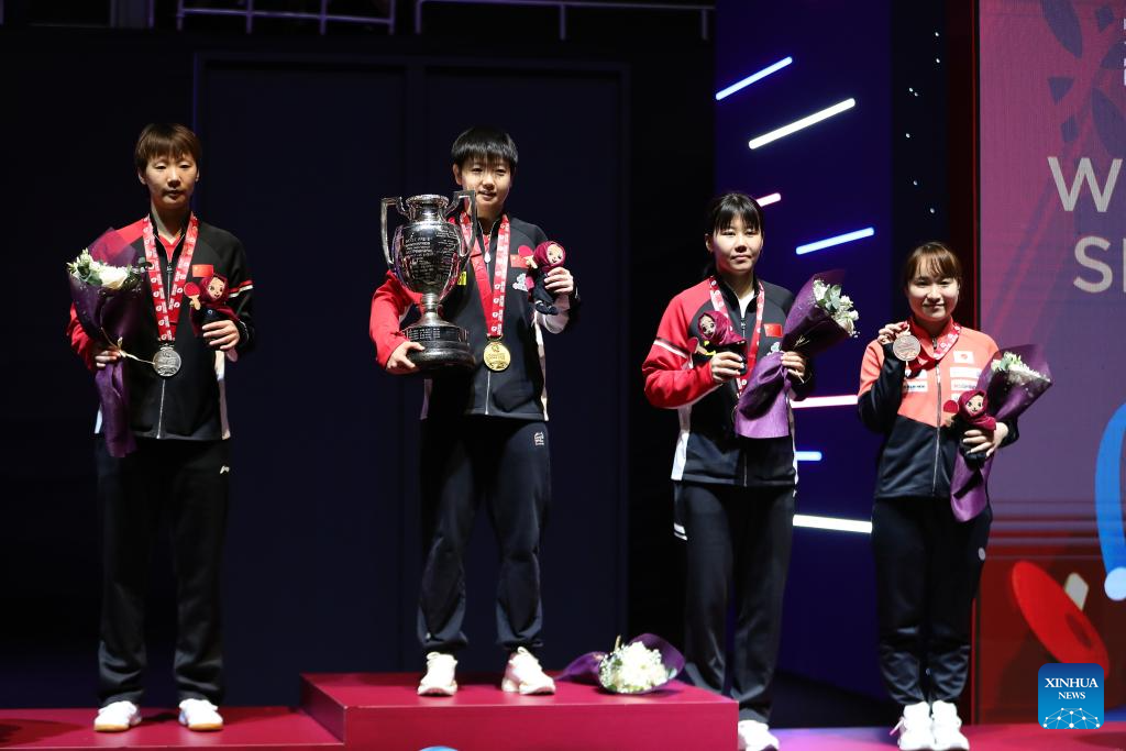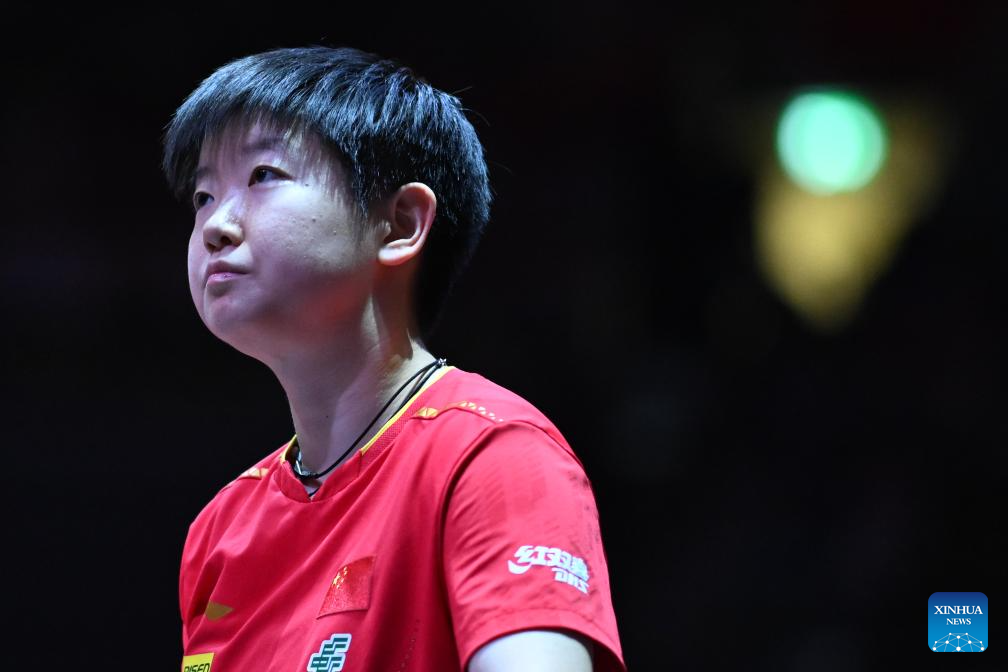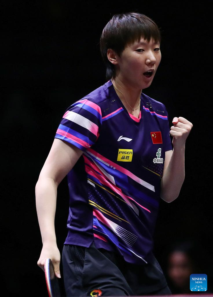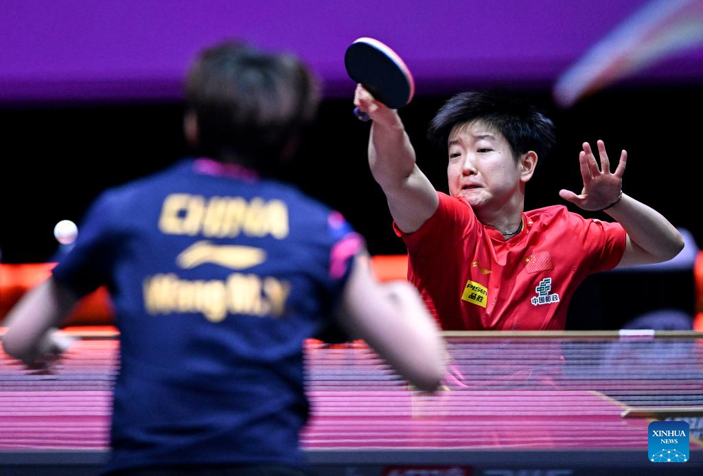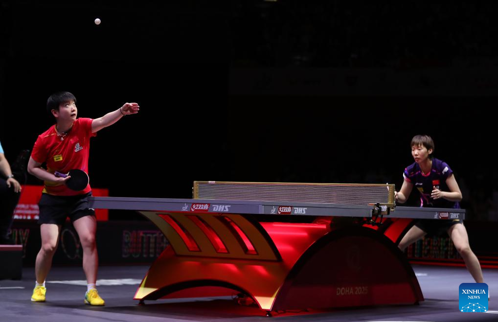 DOHA, May 25 (Xinhua) -- Defending champion and world No. 1 Sun Yingsha defeated second-ranked Wang Manyu 4-3 to retain her women's singles title at the World Table Tennis Championships on Sunday, adding to the mixed doubles crown she had claimed earlier in the tournament.