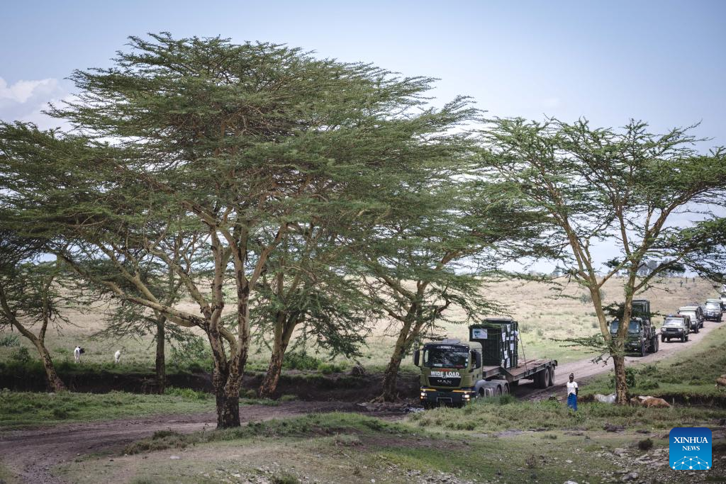 Vehicles of the Kenya Wildlife Service (KWS) relocate a black rhino during a translocation exercise in Laikipia, Kenya, on May 24, 2025. (Xinhua/Wang Guansen)