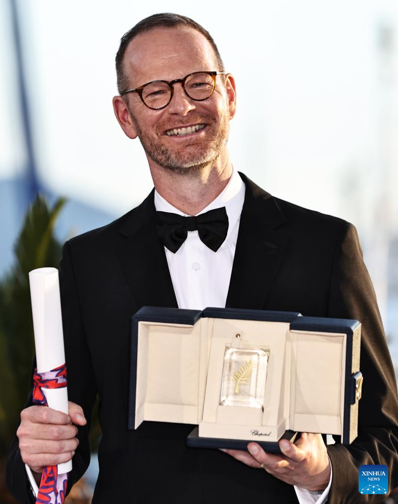 Norwegian director Joachim Trier poses during a photocall with his trophy after he won the Grand Prix Prize for the film "Sentimental Value" during the closing ceremony of the 78th edition of the Cannes Film Festival in Cannes, southern France, on May 24, 2025. (Xinhua/Gao Jing)