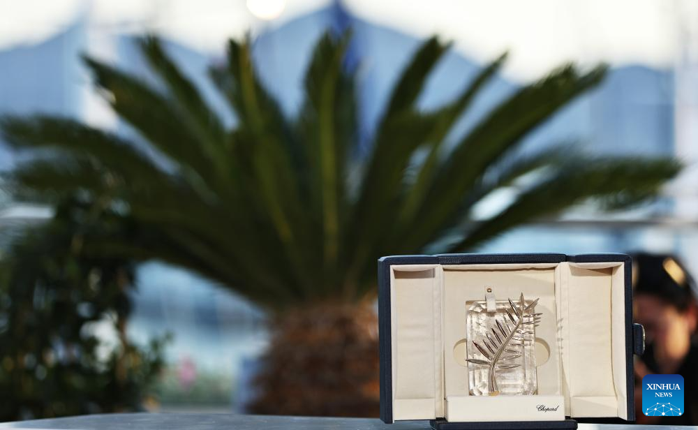 The trophy of the Palme d'Or is seen after the closing ceremony of the 78th edition of the Cannes Film Festival in Cannes, southern France, on May 24, 2025. (Xinhua/Gao Jing)