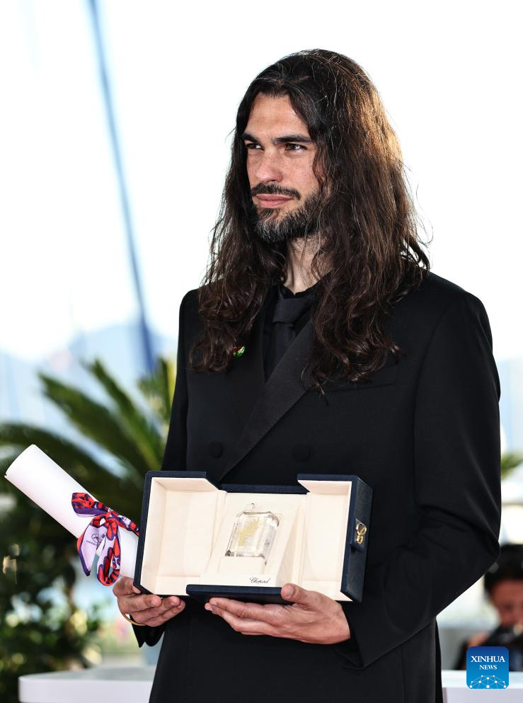 French-Spanish film "Sirat" director Oliver Laxe poses during a photocall after winning the ex-aequo Jury Prize for the film at the closing ceremony of the 78th edition of the Cannes Film Festival in Cannes, southern France, on May 24, 2025. (Xinhua/Gao Jing)