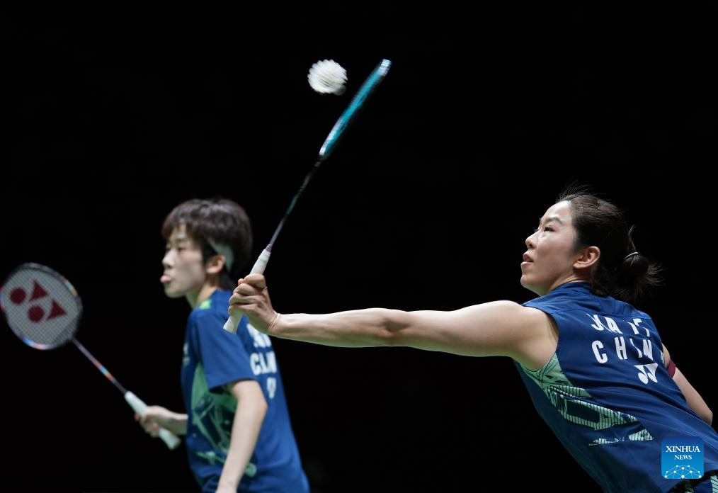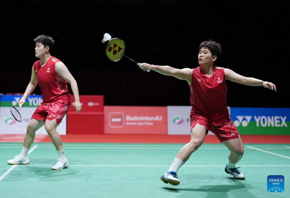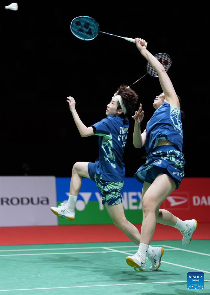 Liu Shengshu/Tan Ning (R) compete during the women's doubles final between Liu Shengshu/Tan Ning of China and Jia Yifan/Zhang Shuxian of China at the Malaysia Masters 2025 badminton tournament in Kuala Lumpur, Malaysia, May 25, 2025. (Xinhua/Jia Haocheng)