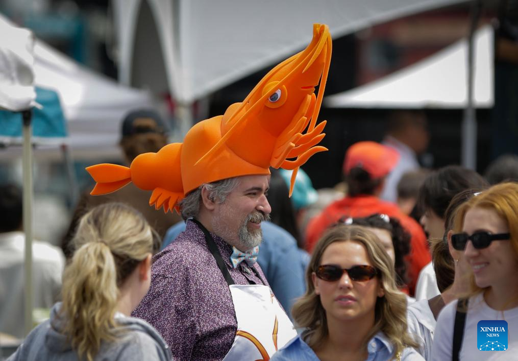 The Spot Prawn Festival was held here on Sunday to mark the start of the spot prawn harvesting season, featuring fresh prawn sales, food, music, and cooking demonstrations. (Photo by Liang Sen/Xinhua)
