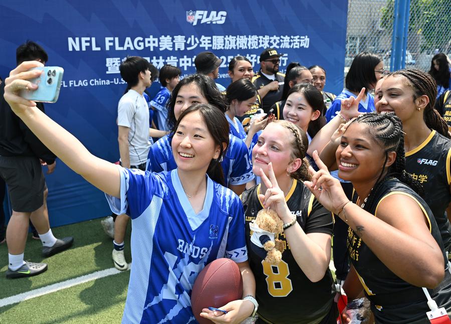 Students of Lincoln High School and Beijing National Day School compete during the NFL FLAG China-U.S. Youth Flag Football Exchange Event & Lincoln High School 2025 China Tour at Beijing National Day School in Beijing, capital of China, May 26, 2025. (Xinhua/Li He)Students of Lincoln High School and Beijing National Day School take selfies during the NFL FLAG China-U.S. Youth Flag Football Exchange Event & Lincoln High School 2025 China Tour at Beijing National Day School in Beijing, capital of China, May 26, 2025. (Xinhua/Li He)Students of Lincoln High School and Beijing National Day School pose for a group photo during the NFL FLAG China-U.S. Youth Flag Football Exchange Event & Lincoln High School 2025 China Tour at Beijing National Day School in Beijing, capital of China, May 26, 2025. (Xinhua/Li He)■