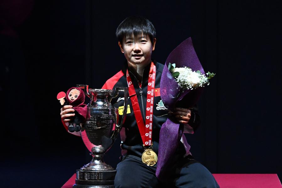 DOHA, May 25 (Xinhua) -- Wang Chuqin and Sun Yingsha combined for three gold medals to help China sweep four out of five at the World Table Tennis Championships which ended here on Sunday.