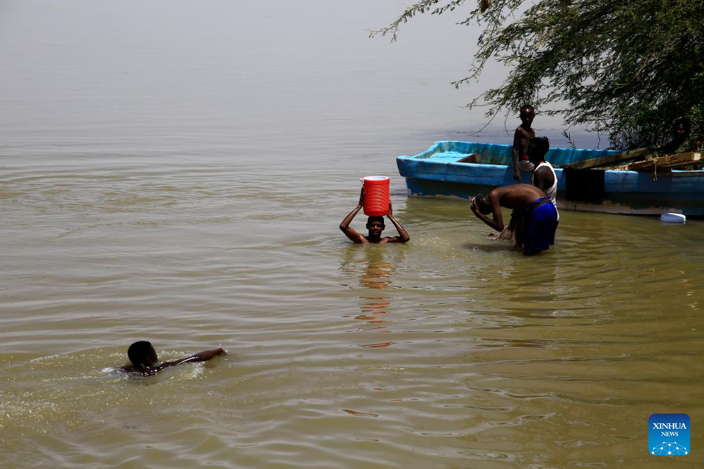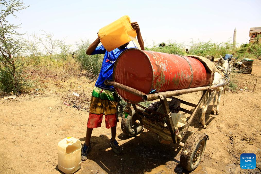 This intense heatwave has exacerbated existing challenges faced by the residents, including power outages and a severe drinking water crisis due to drone attacks that targeted power stations during armed conflicts. (Photo by Mohamed Khidir/Xinhua)