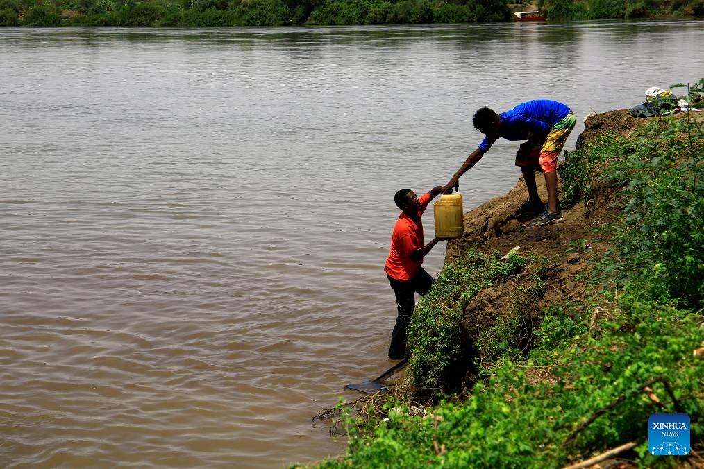 Sudanese citizens get water from the Nile near Al-Hattana neighborhood in Omdurman City, north of the Sudanese capital Khartoum, May 25, 2025.