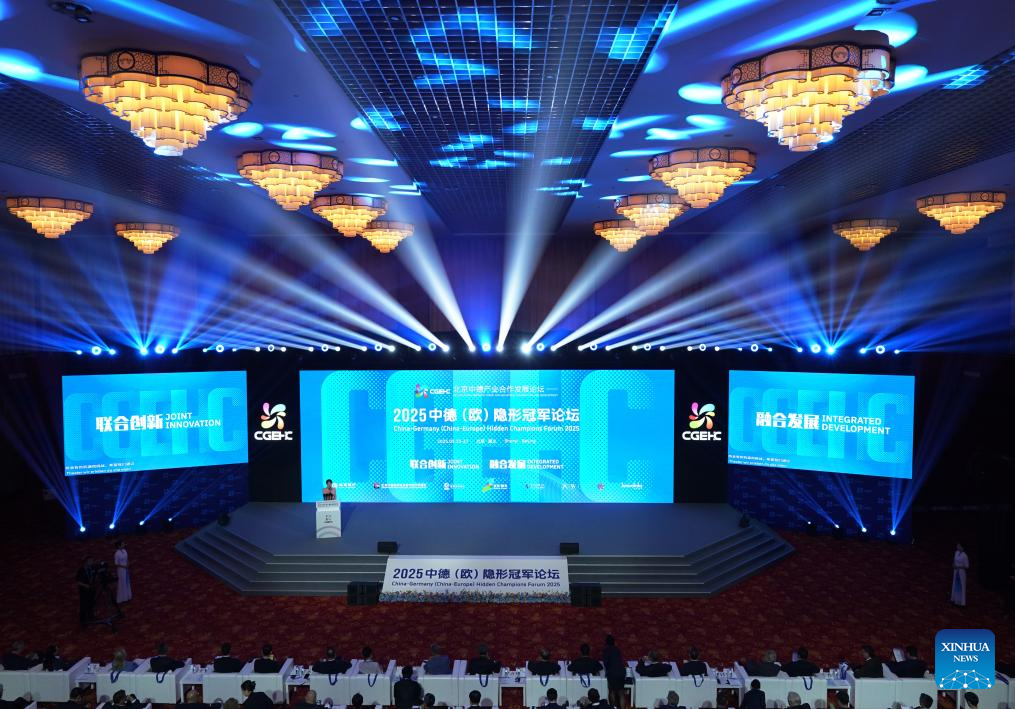 This photo taken on May 26, 2025 shows the opening ceremony of the China-Germany (China-Europe) Hidden Champions Forum 2025 in Beijing, capital of China. The China-Germany (China-Europe) Hidden Champions Forum 2025 kicked off here on Monday. (Xinhua/Zhang Chenlin)