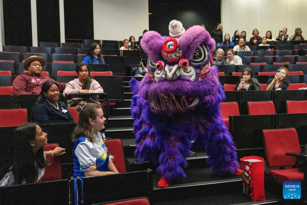 A lion dance show is staged at the "Chinese Bridge" Chinese Proficiency Competition in Auckland, New Zealand, May 24, 2025.