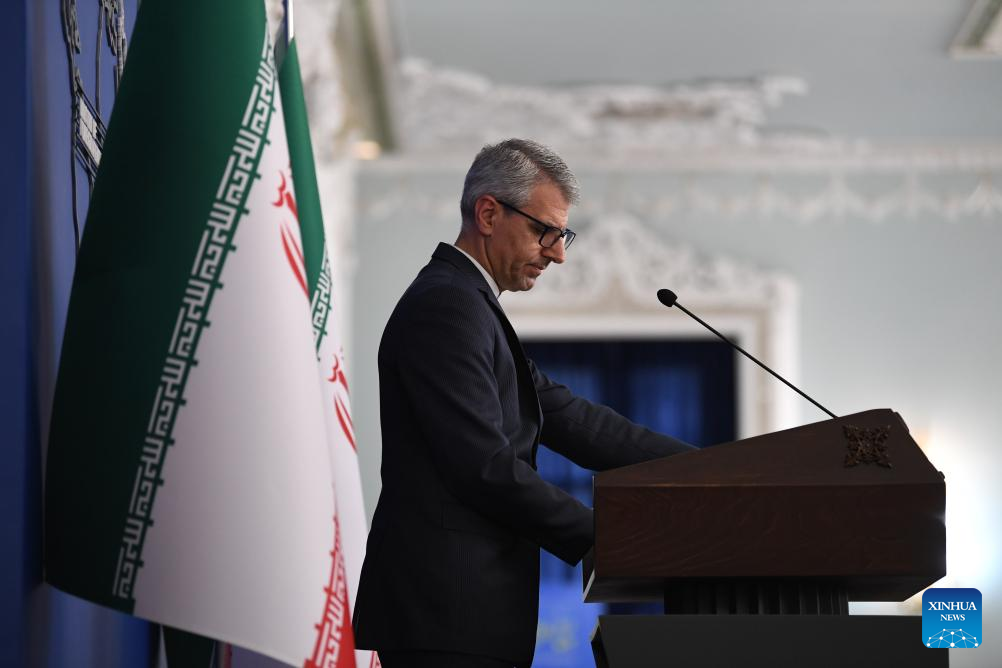 Iranian Foreign Ministry Spokesman Esmaeil Baghaei attends a press conference in Tehran, Iran, on May 26, 2025. An interim nuclear agreement between Iran and the United States is not on Iran's agenda, Baghaei said here Monday. (Xinhua/Shadati)