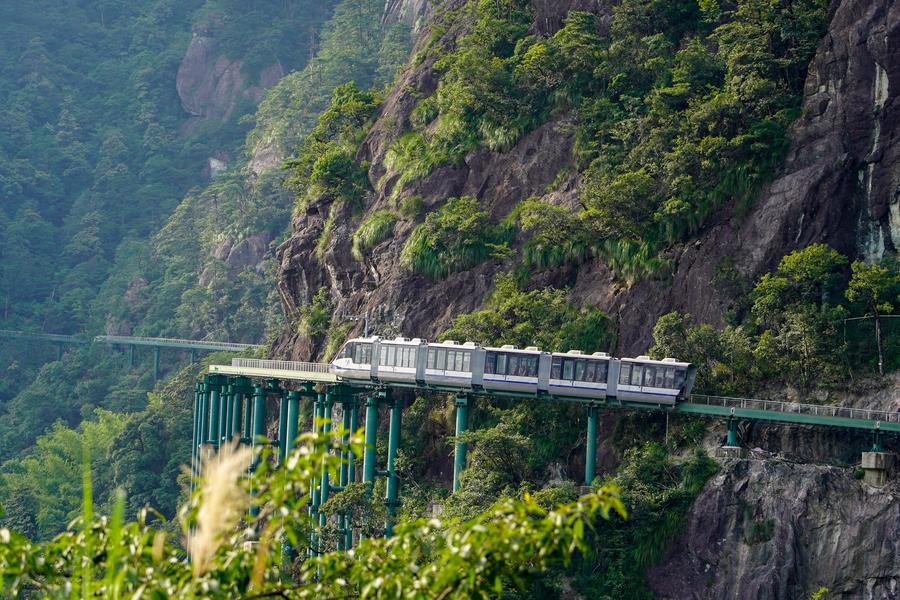 Meanwhile, cliff shuttle trains began operating earlier this year in the Dajue Mountain Scenic Area in Jiangxi. Notably, a third of the 11.8-kilometer train route runs directly along a cliff.