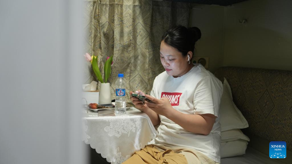 Chinese passenger Tang Piao takes the China-Vietnam international train from Hanoi, Vietnam, to Nanning, China, May 26, 2025. (Photo by Dang Hong Dung/Xinhua)