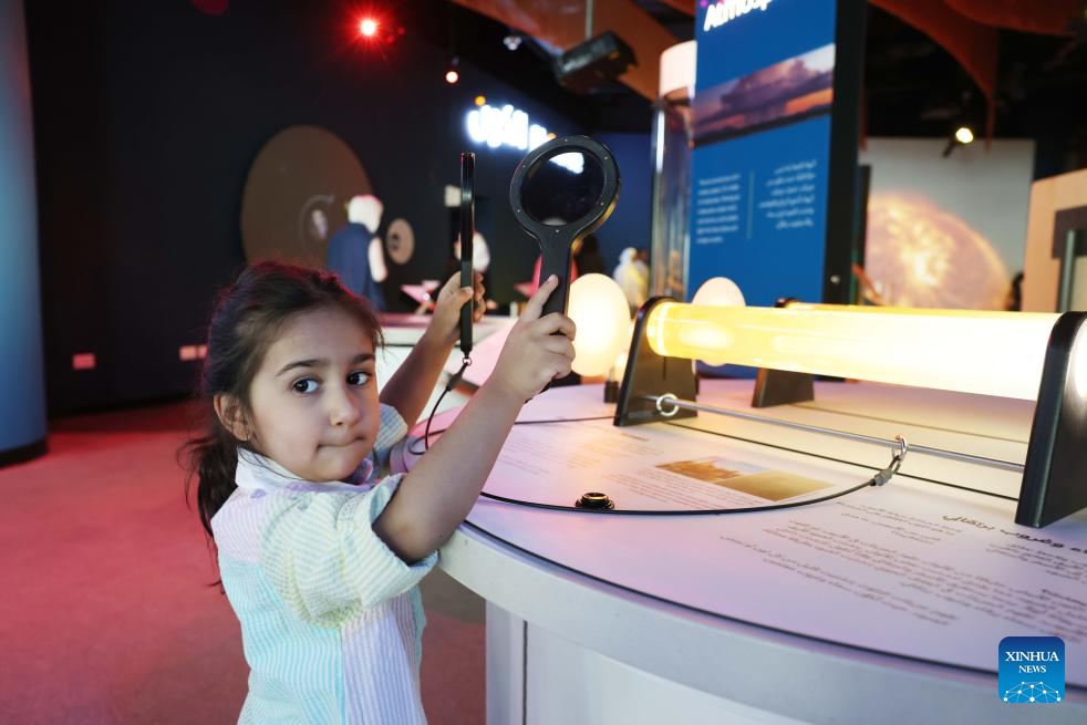 A girl visits the World of Science Exhibition at the Scientific Center in Hawalli Governorate, Kuwait, May 26, 2025. (Photo by Asad/Xinhua)