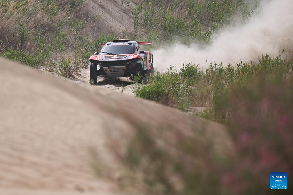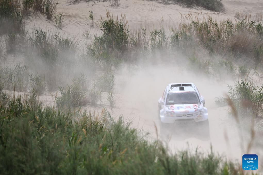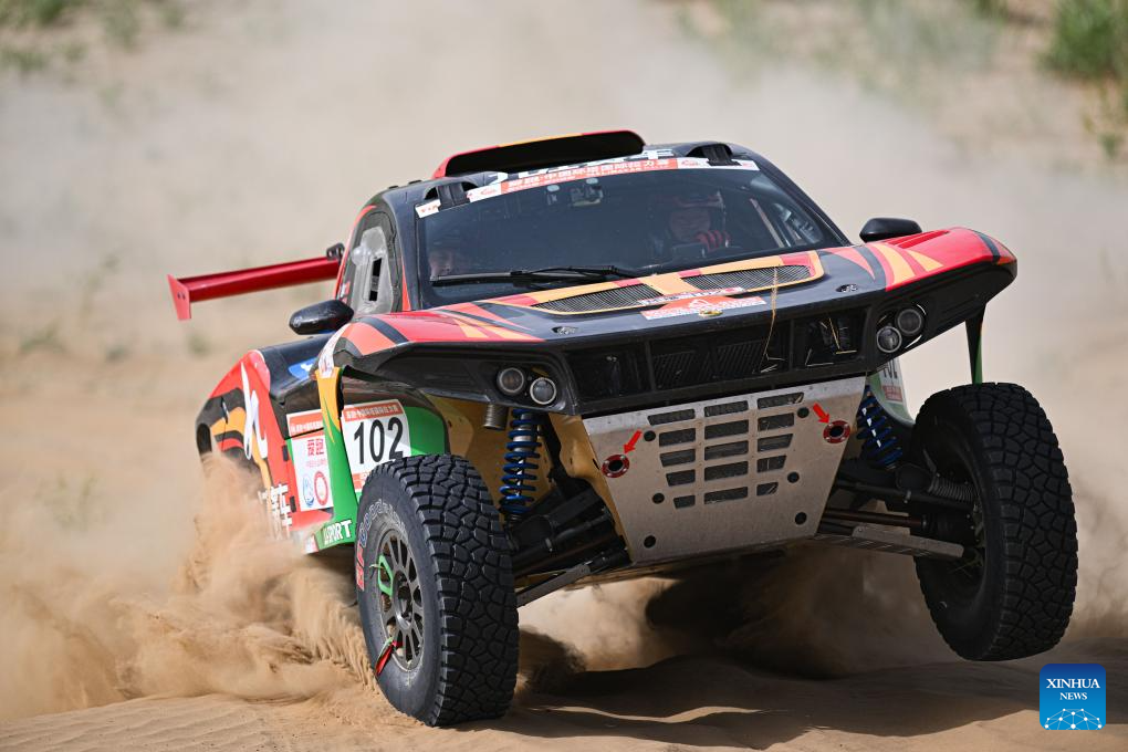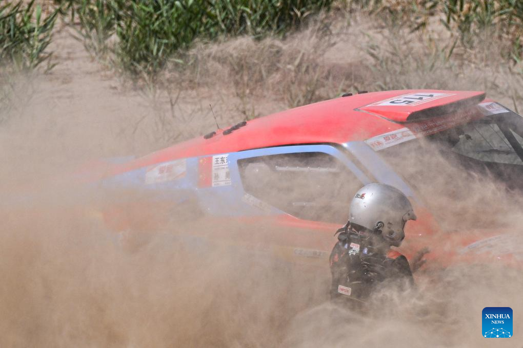 Driver Tao Yongming and co-driver Shen Xin of China compete during Stage 6 of the 2025 Taklimakan Rally in Hetian, northwest China's Xinjiang Uygur Autonomous Region, May 27, 2025. (Xinhua/Xin Yuewei)