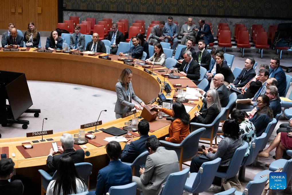 A conference officer collects ballots during a UN Security Council meeting to elect a judge of the International Court of Justice (ICJ) at the UN headquarters in New York, on May 27, 2025. Jordan's UN ambassador Mahmoud Hmoud was elected a judge of the International Court of Justice (ICJ) on Tuesday to replace Nawaf Salam, who resigned in January following his appointment as Lebanese prime minister. (Evan Schneider/UN Photo/Handout via Xinhua)