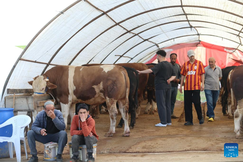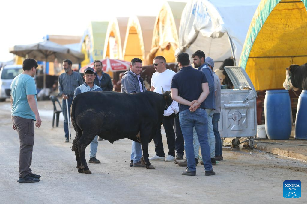 People buy cattle at a livestock market in Ankara, Türkiye, on May 28, 2025. (Mustafa Kaya/Handout via Xinhua)