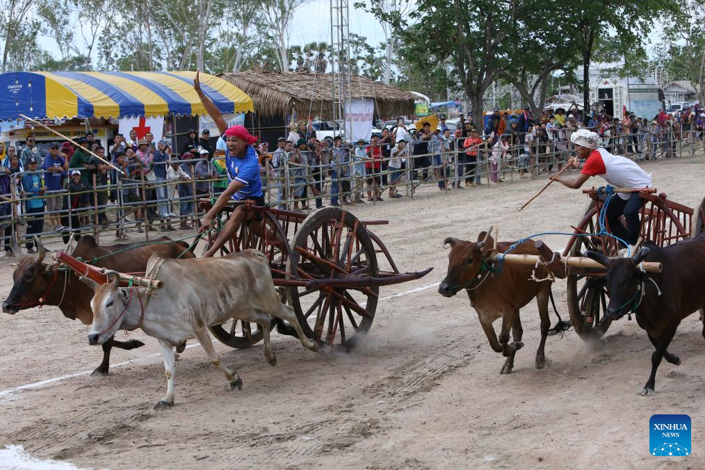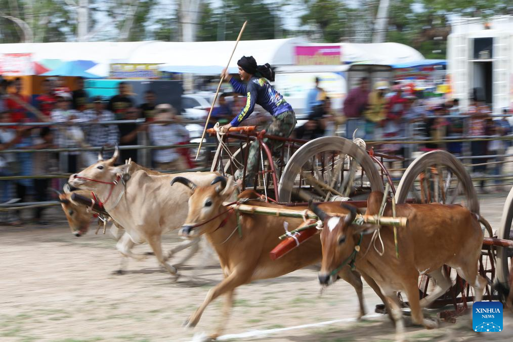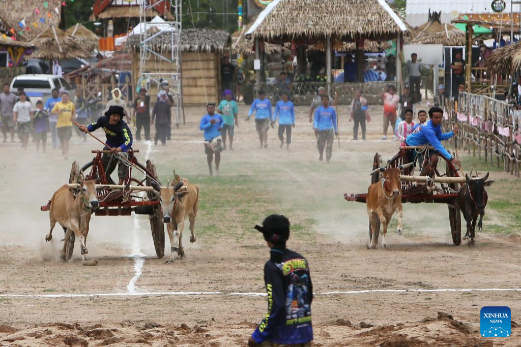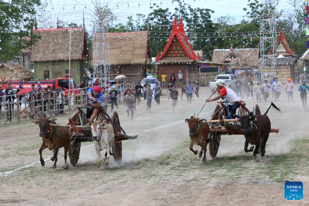 Contestants compete during an ox cart race in Phetchaburi Province, Thailand, on May 28, 2025. Ox cart racing is an annual event held in Phetchaburi to celebrate the end of harvest season. (Xinhua/Rachen Sageamsak)