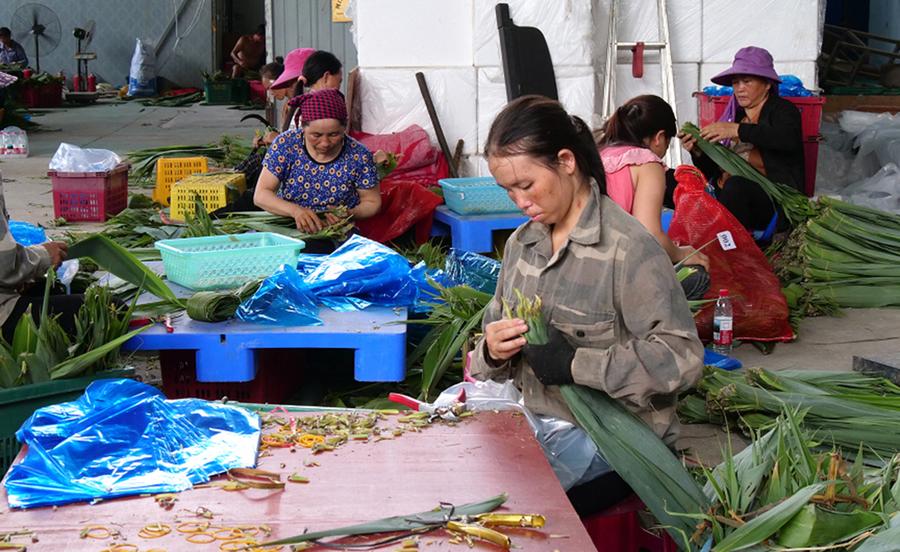 "Bamboo and reed leaves from Vietnam are broad and flexible, which makes them perfect for wrapping large zongzi," said Su Jirong, manager of the company.