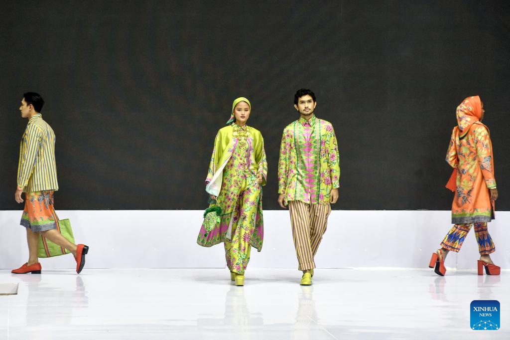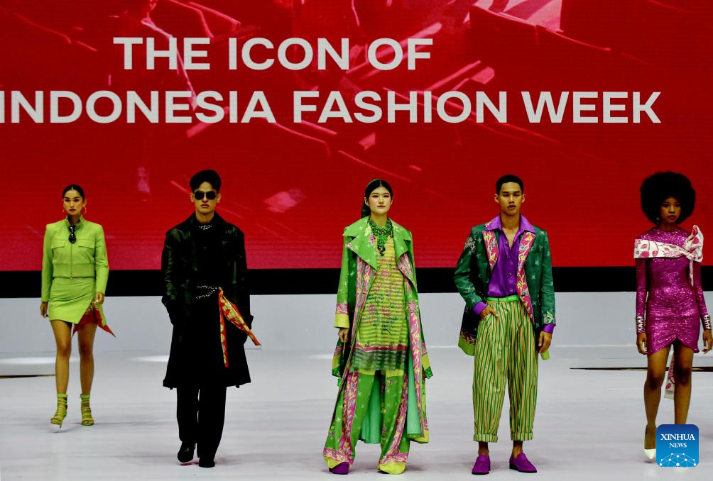 Models present creations at the Indonesia Fashion Week 2025 at Jakarta Convention Center in Jakarta, Indonesia, May 28, 2025. (Xinhua/Agung Kuncahya B.)