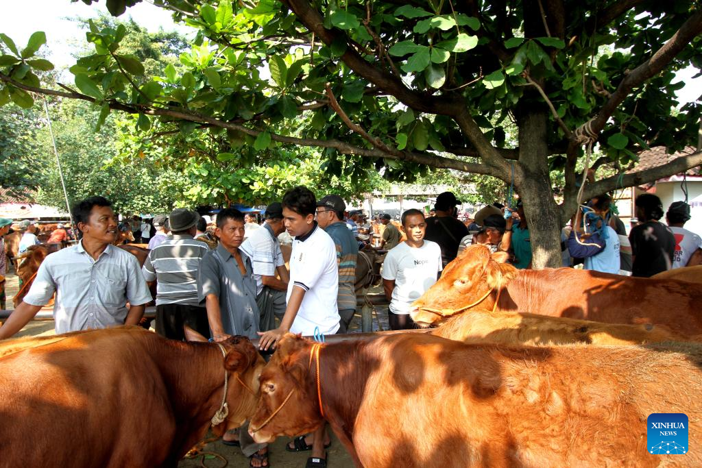 People trade at Bekonang livestock market ahead of Eid Al-Adha in Sukoharjo Regency, Central Java, Indonesia, May 28, 2025. (Photo by Bram Selo/Xinhua)
