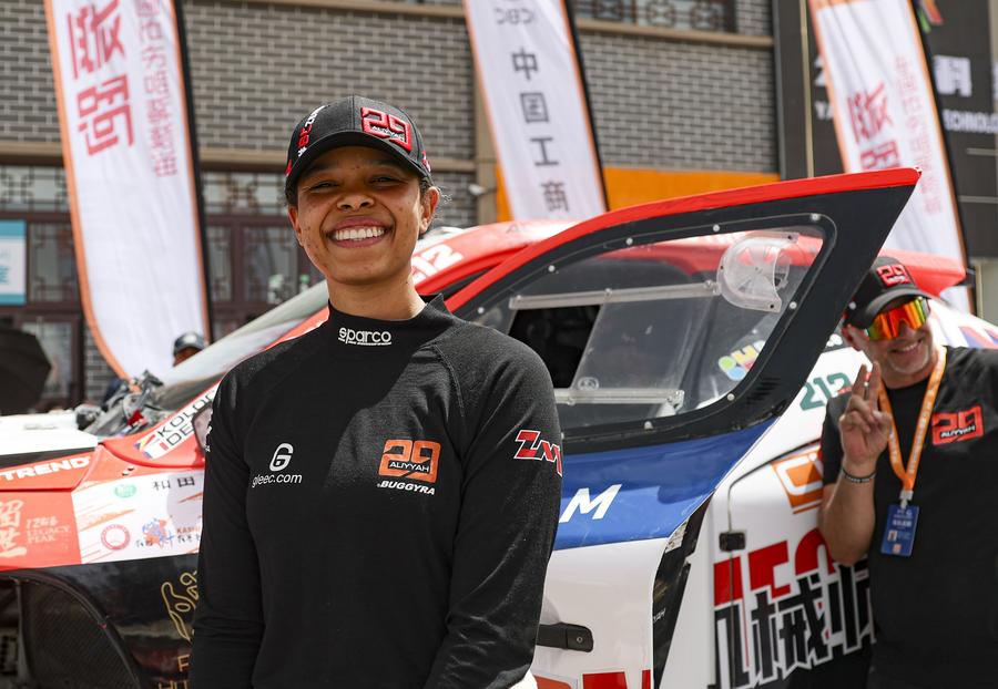URUMQI, May 29 (Xinhua) -- As the roar of her engine pierced the desert stillness, Aliyyah Koloc's fingers tapped a rhythm on the steering wheel. In her rearview mirror, a curtain of dust swallowed the trail she had just blazed through the sand.