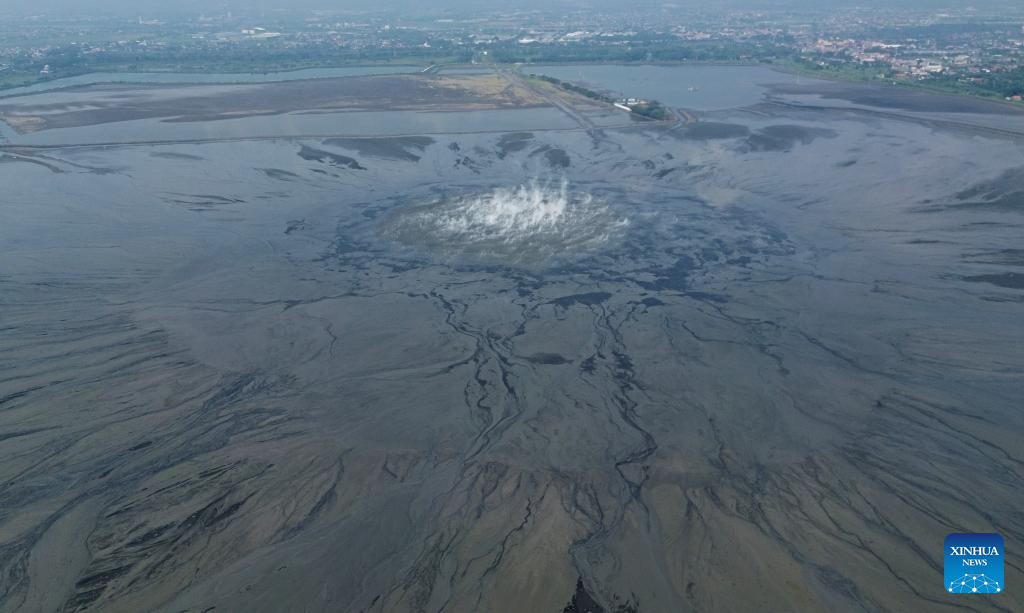 An aerial drone photo shows a view of the Lapindo mudflow area in Sidoarjo Regency, East Java, Indonesia, May 29, 2025. The disaster occurred on May 29, 2006 in an operation mishap conducted by PT Lapindo Brantas when it tried to explore oil deposit in the area. The mishap led to the spew of mud from high-pressure earth layer. (Photo by Sahlan Kurniawan/Xinhua)