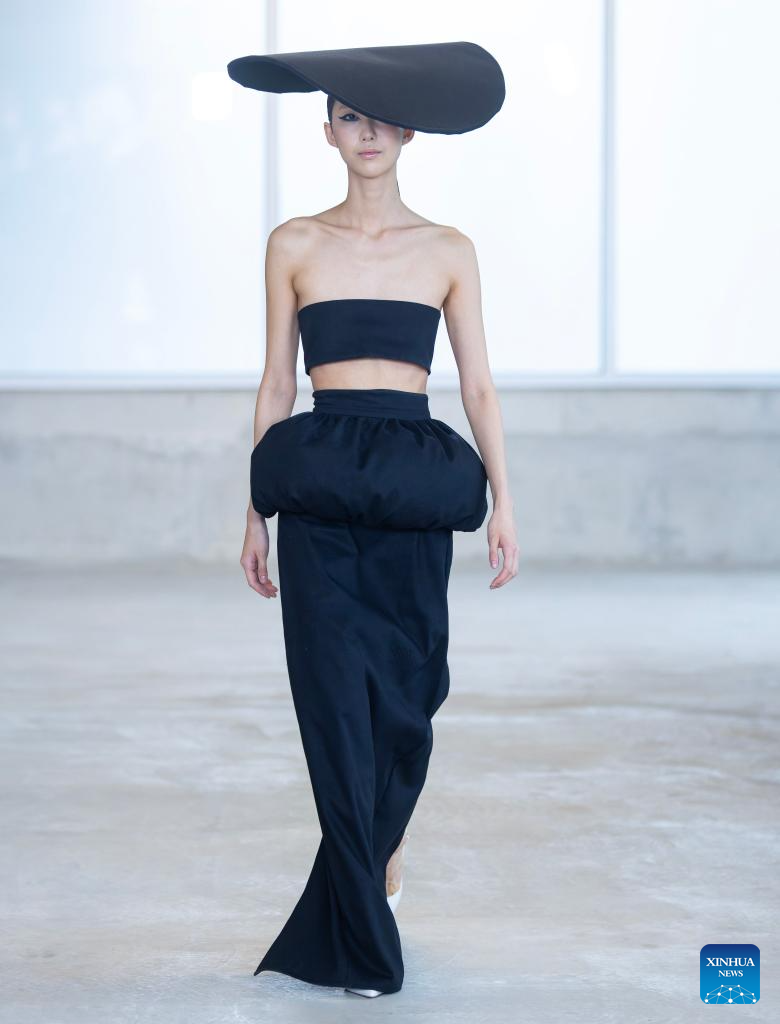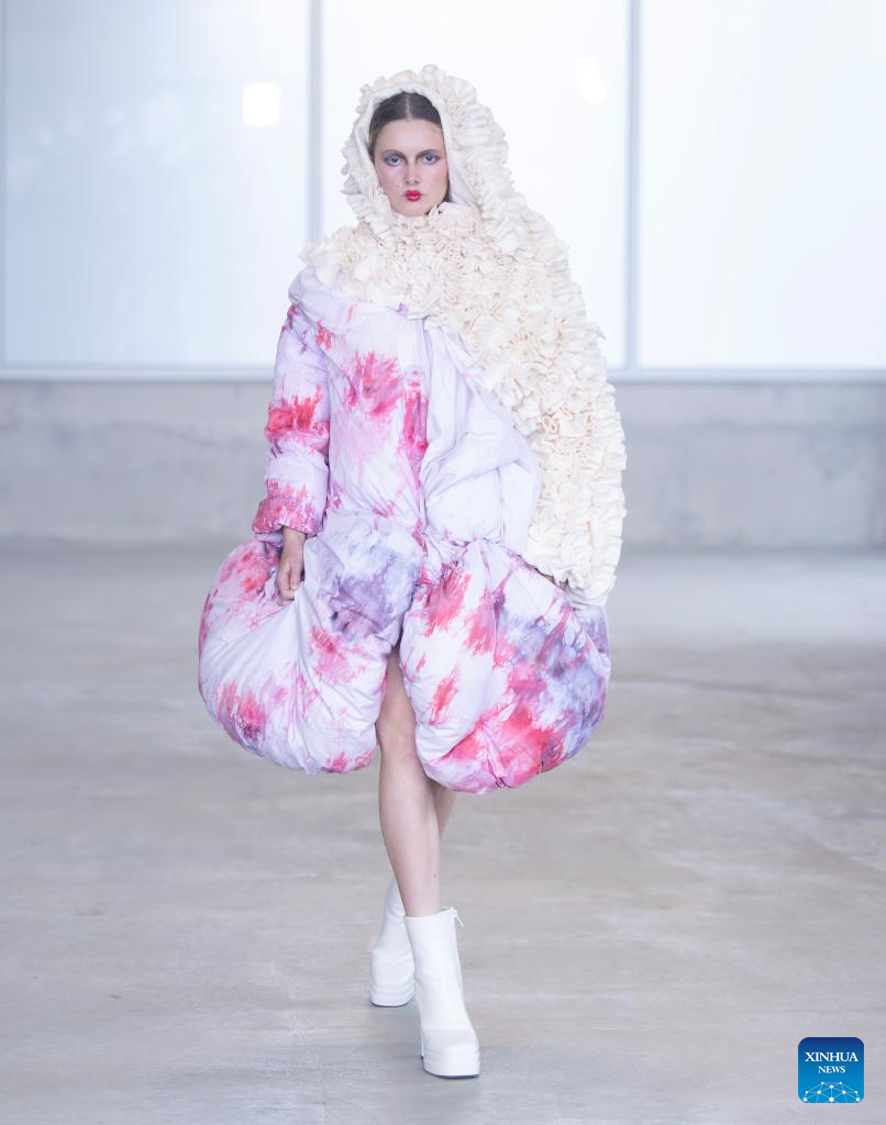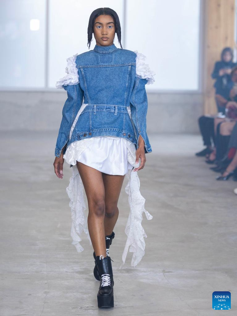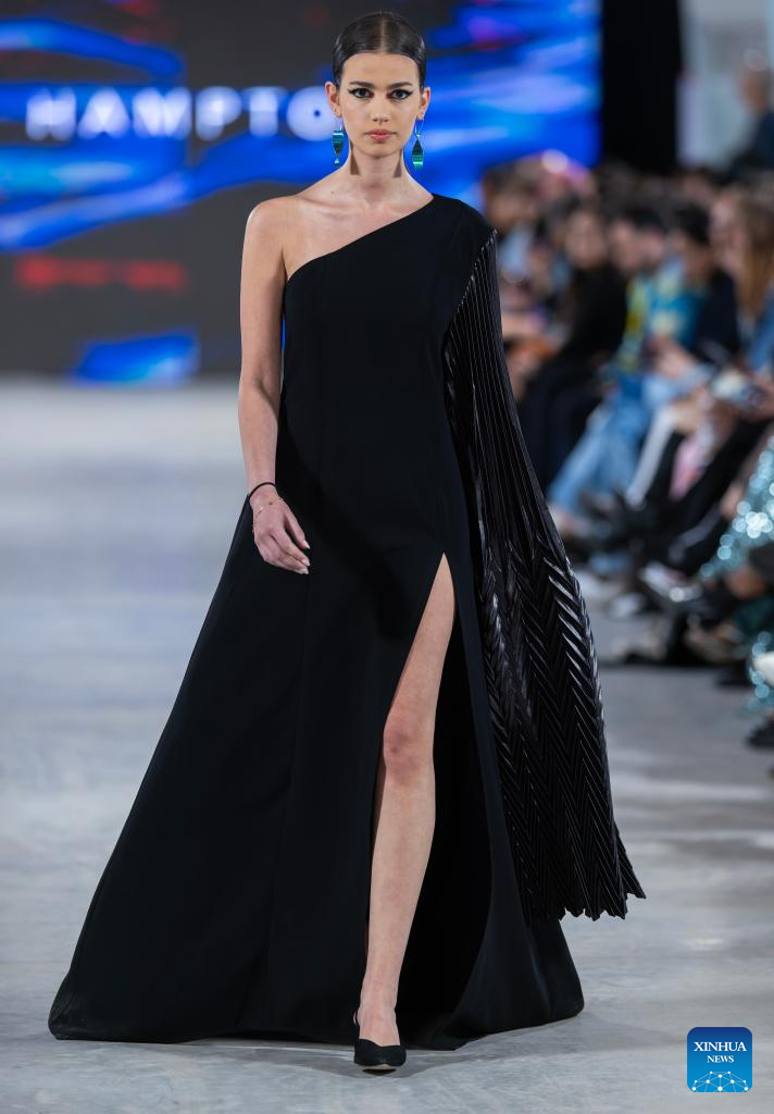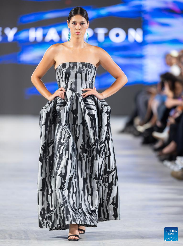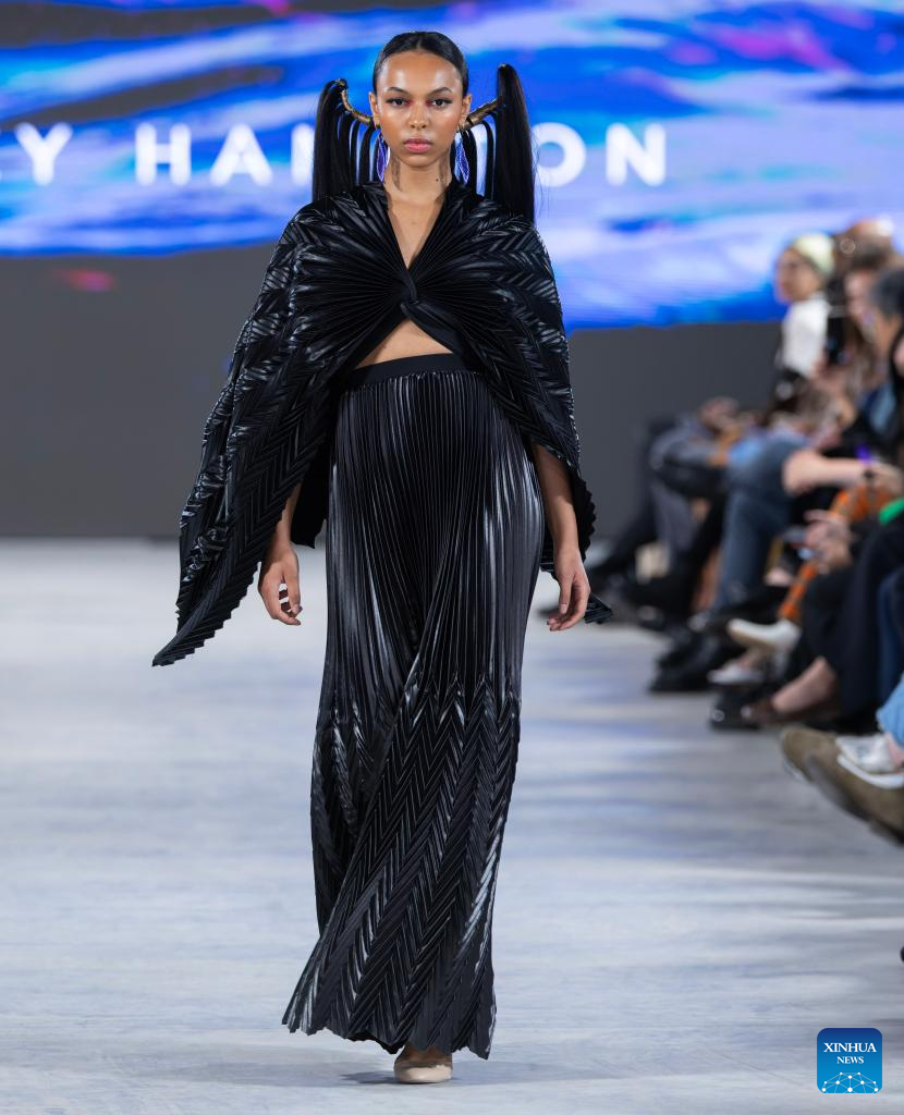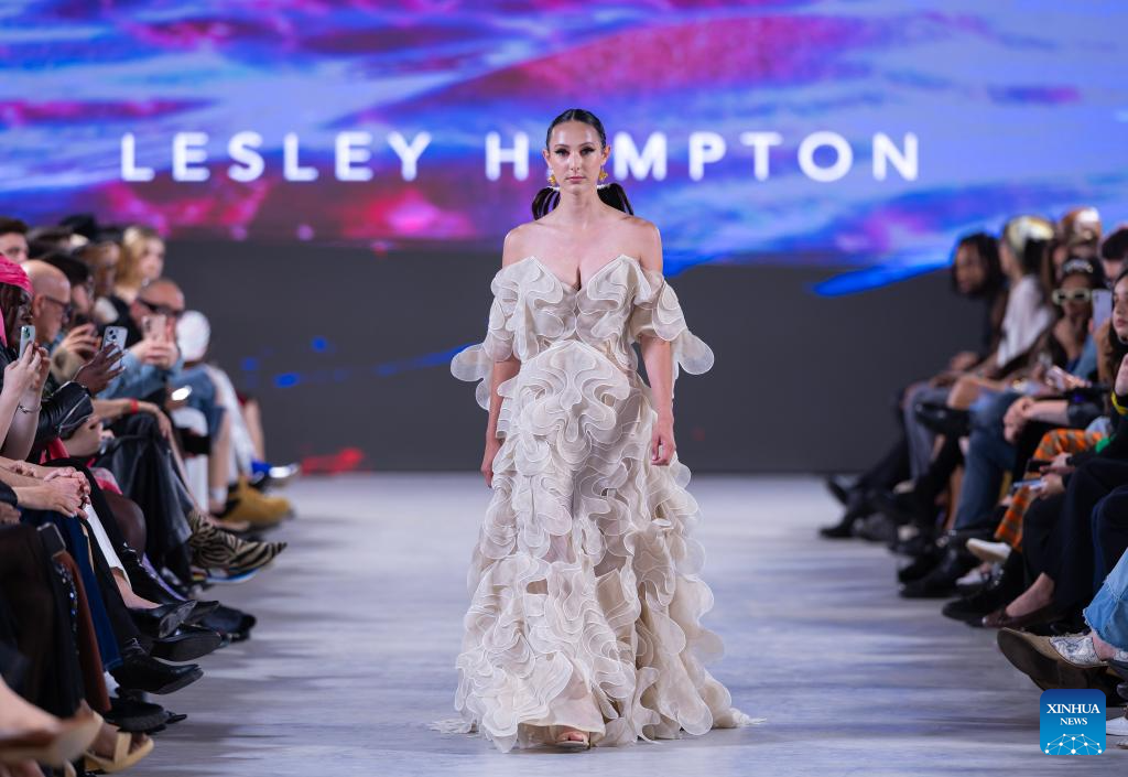 A model presents a creation at the 2025 Fashion Art Toronto's Fashion Week Spring/Summer in Toronto, Canada, on May 29, 2025. Featuring collections from over 40 Canadian designers, the annual fashion show kicked off here on Thursday. (Photo by Zou Zheng/Xinhua)
