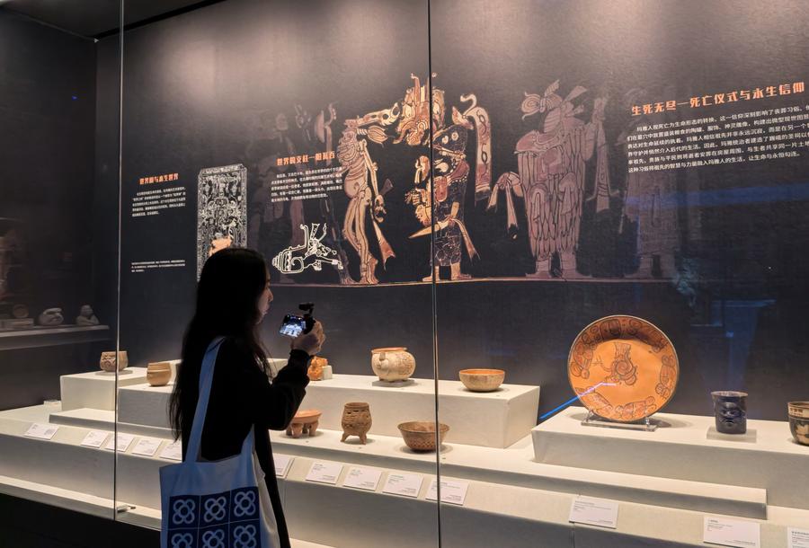 ZHENGZHOU, May 30 (Xinhua) -- The ongoing exhibition "Mayas, Ceiba and Cosmos" in central China's Henan Province, one of the main birthplaces and development areas of Chinese civilization, has attracted many visitors, offering them a unique opportunity to explore the resonances between the Chinese and Mayan civilizations and to enhance the cultural exchanges between China and Mexico.