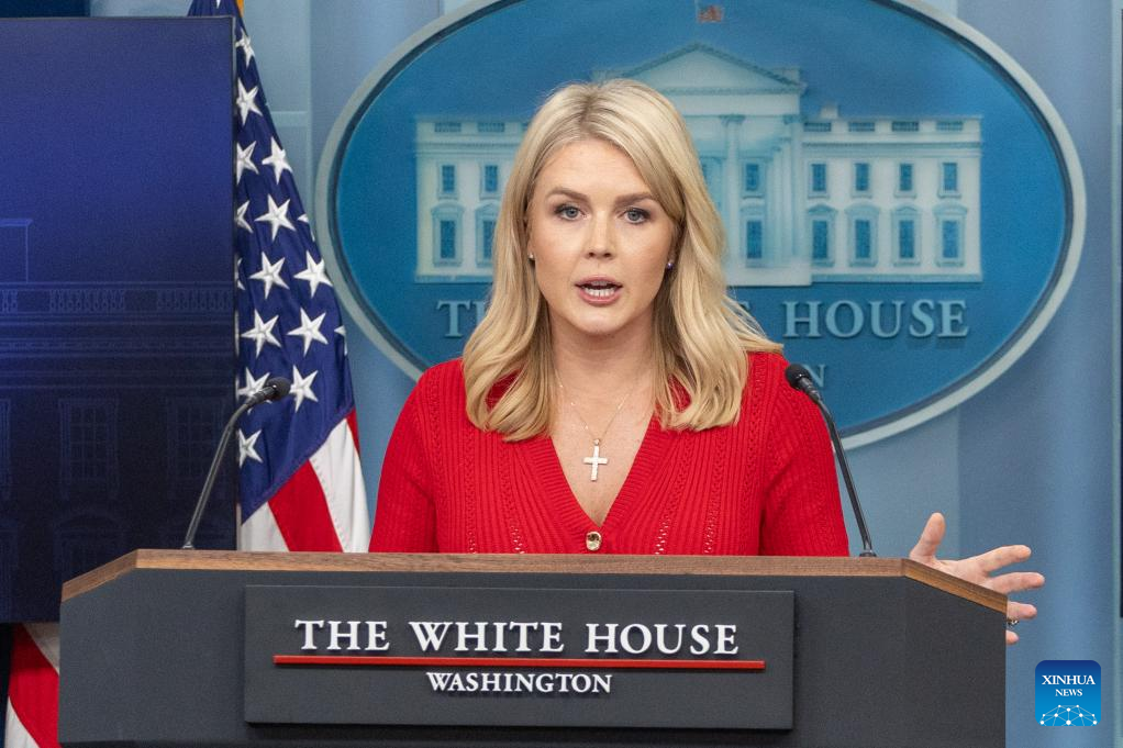 White House Press Secretary Karoline Leavitt speaks during a press briefing at the White House in Washington, D.C., the United States, on May 29, 2025. (Xinhua/Hu Yousong)