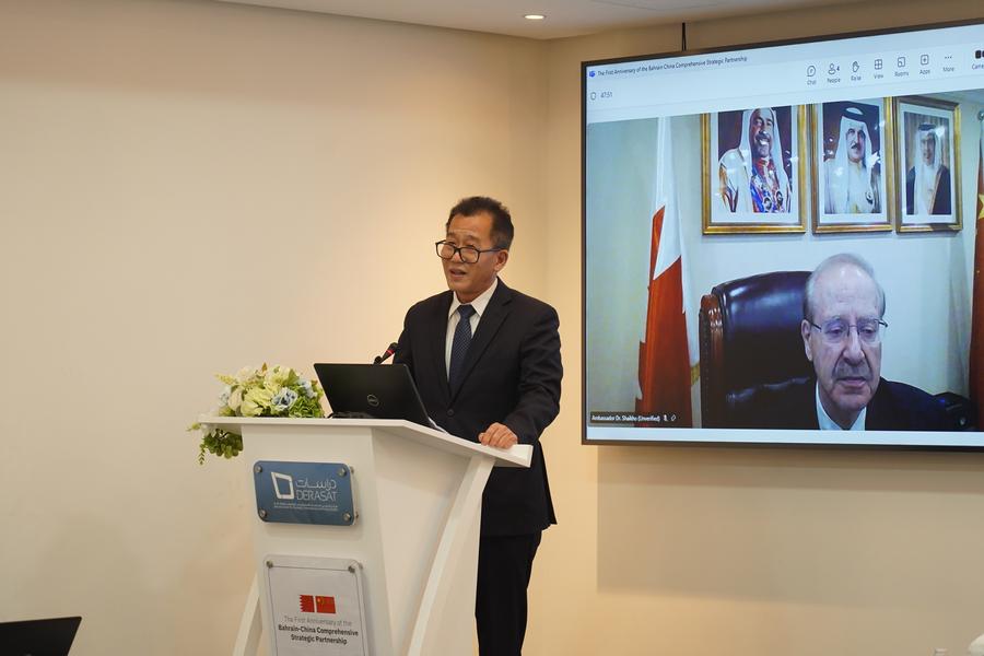 Addressing the symposium via video link, Bahrain's Ambassador to China Mohammed Ghassan Mohammed Adnan Sheikhoo noted that during Bahraini King Hamad bin Isa Al Khalifa's visit to China in May last year, the two countries elevated their bilateral relations to a comprehensive strategic partnership.