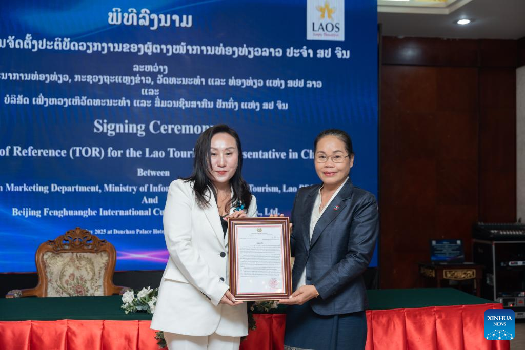 VIENTIANE, May 30 (Xinhua) -- Laos' Ministry of Information, Culture and Tourism held a signing ceremony for the terms of reference for the Lao Tourism Representative in China, aiming to more effectively promote the Lao tourism brand to Chinese travelers and further enhance bilateral tourism exchanges between Laos and China.