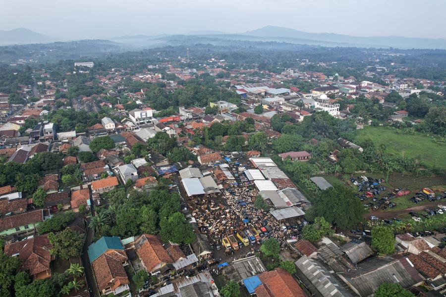 An aerial drone photo shows a traditional livestock market in Jonggol, Bogor regency of West Java province in Indonesia on May 29, 2025. (Xinhua/Veri Sanovri)People gather to buy livestock at a traditional livestock market in Jonggol, Bogor regency of West Java province in Indonesia on May 29, 2025. (Xinhua/Veri Sanovri)People gather to buy livestock at a traditional livestock market in Jonggol, Bogor regency of West Java province in Indonesia on May 29, 2025. (Xinhua/Veri Sanovri)People gather to buy livestock at a traditional livestock market in Jonggol, Bogor regency of West Java province in Indonesia on May 29, 2025. (Xinhua/Veri Sanovri)An aerial drone photo shows a traditional livestock market in Jonggol, Bogor regency of West Java province in Indonesia on May 29, 2025. (Xinhua/Veri Sanovri)■